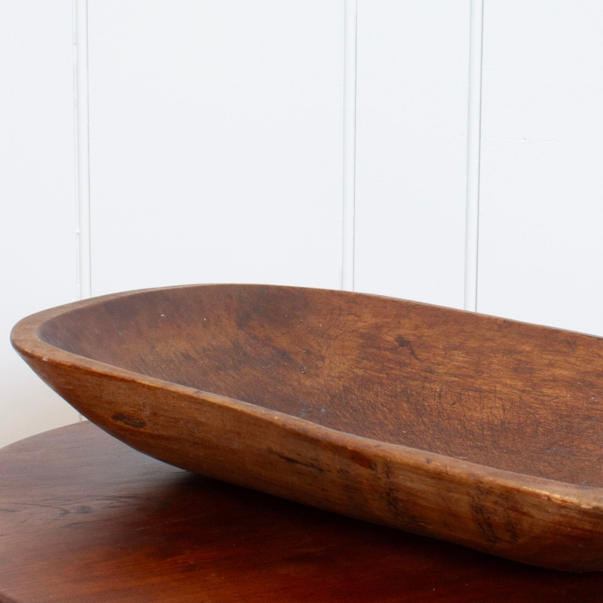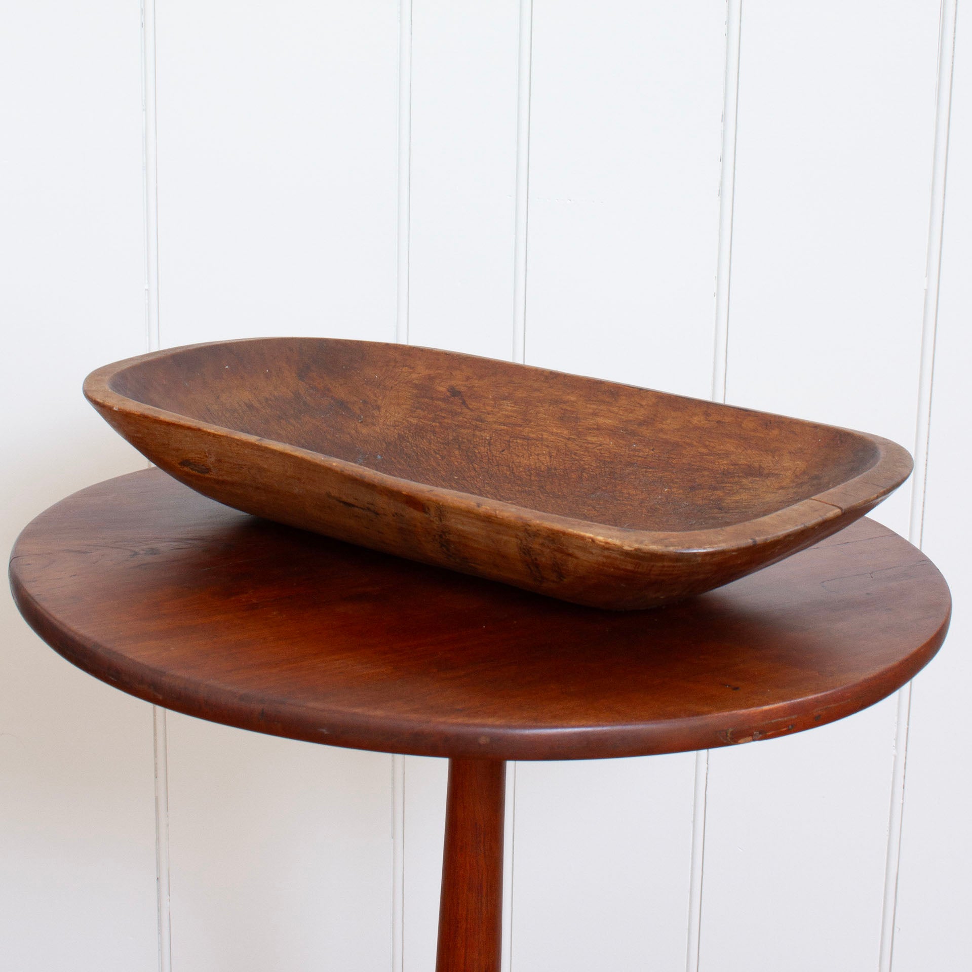 A one of a kind, hand-carved solid wood trencher from the 19th Century. The interior has a beautiful worn patina of time and usage. Antique wood reliably brings warmth to your decor. There is a small crack, consistent with age, on the rim on one side.
