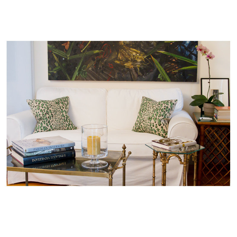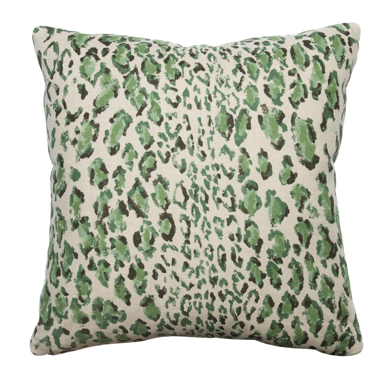 Pillow cover front is a playful and elegant leopard print design by Rose Cumming on 100% linen. Pillow cover back is finely woven, natural 100% Irish linen with knife-edge finishing.